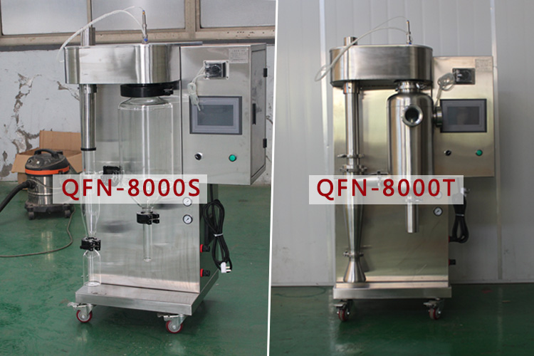 小型噴霧干燥機是市面上比較常見的一款噴霧干燥機,主要用于科研實驗室或中小企業前期摸索使用,也廣泛用于高效實驗室等,小型噴霧干燥機是一款體積較小,帶有腳輪方便移動的一款多功能噴霧干燥機,同時小型噴霧干燥機分為兩款,一款為QFN-8000S高硼硅玻璃干燥室,另一款為QFN-8000T不銹鋼干燥室,這兩款的區別就是干燥室材質不同,高硼硅玻璃干燥室的話,方便觀察物料在干燥室內的霧化狀態及干燥狀態,而不銹鋼干燥的話,不易損壞,那小型噴霧干燥機多少錢呢?下面我們介紹一下。